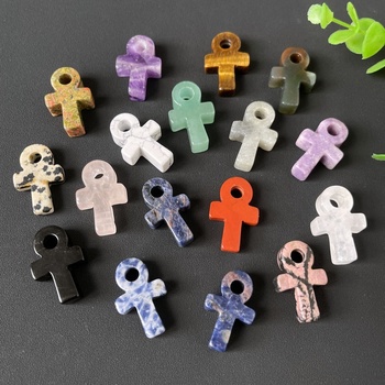 סיטונאי מגולף ביד קריזל אנקה מעורב קוורץ קריסטל צלב תליון לשרשרת