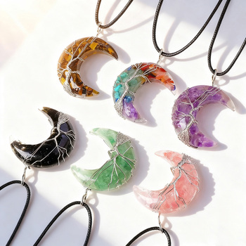 חוט הסיטונאי עטופה קריסטל שרף ירח תליון ריפוי שרשרת אבן קריסטל מתנה